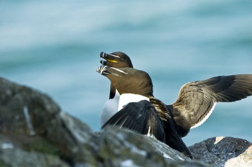 A pair of Razorbill (Alca torda) greeting each other at the nest site on Skomer Island