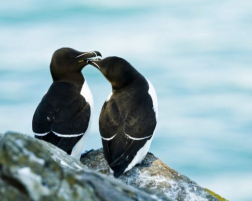 Razorbills (Alca torda) bill fencing on Skomer Island