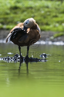 A Ruddy Shelduck (Tadorna ferruginea), preening.