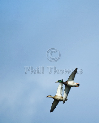 A Pair of Mallard (Anas platyrhyncos), Fly in formation.
