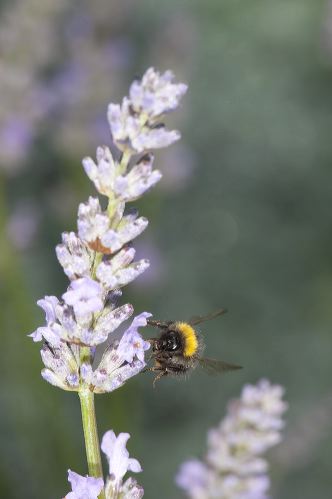 A Buff-tailed Bumblebee (Bombus terrestris) foraging on lavender.