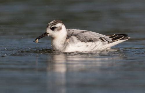 A Grey Phalarope (Phalaropus fulicarius) taking emerging caddis flies off the surface at Eglwys Nunydd.
